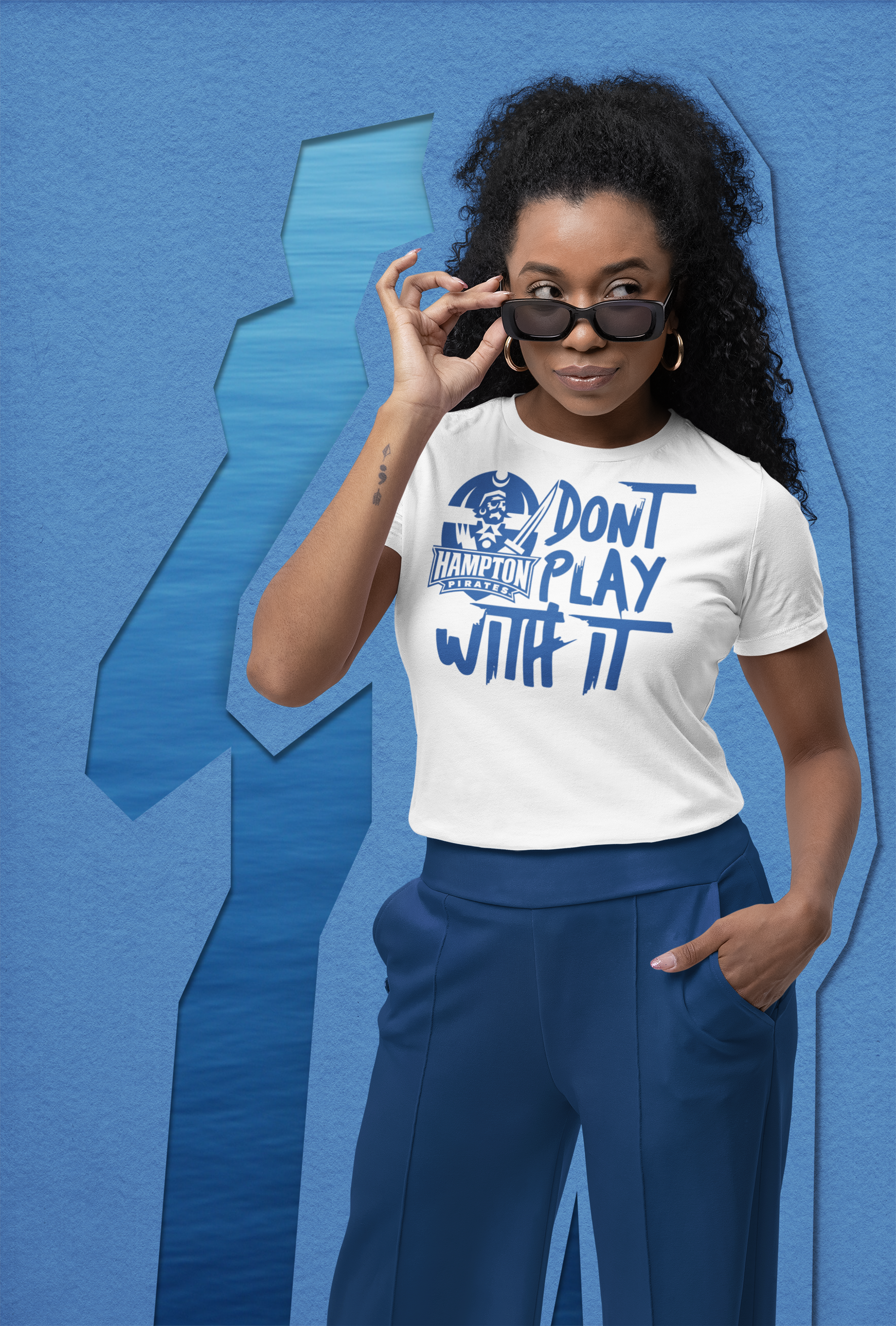 The front of the shirt features the powerful phrase "Don't Play With It," boldly emblazoned in dynamic, eye-catching lettering. The message is a call to action, encouraging every member of the Hampton community to pursue their goals with unwavering focus and drive.